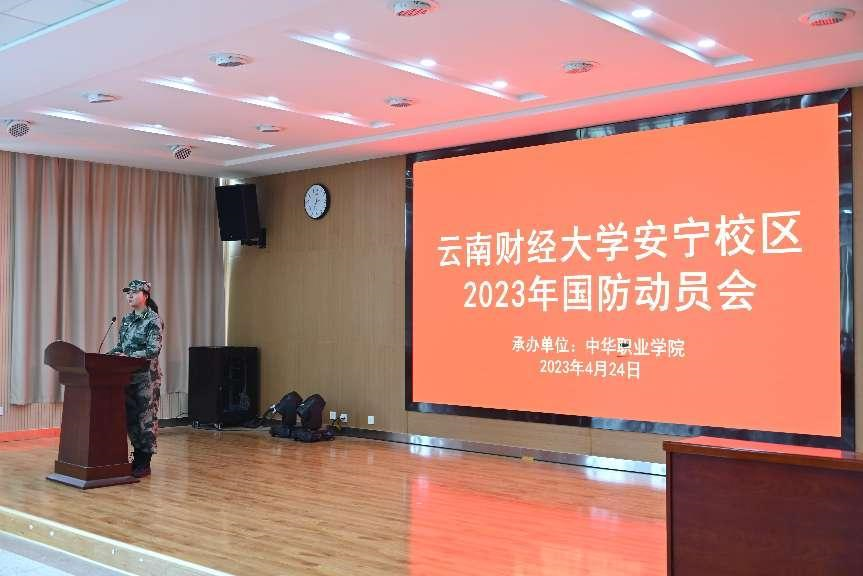 4月24日中午,中华职业学院在安宁校区修远楼204室召开2023年国防动员会。云南省农业农村厅、转业干部金伟强,安宁市武装部征兵办公室参谋朱旭扬,william威廉中文官网武装部副部长、学生处副处长尹航,安宁校区各学院负责征兵工作的辅导员以及2023年入伍意向男生约120人参加会议。会议由学院学工中心副主任杨玲莉主持。