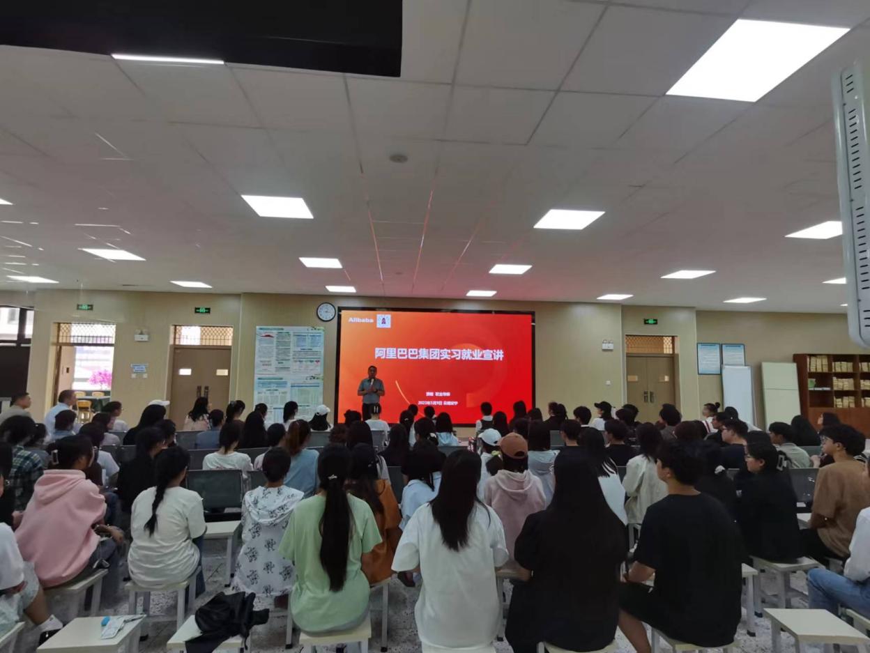 5月9日下午,阿里巴巴集团应邀到中华职业学院“永不落幕的招聘会”开展专场招聘宣讲会。阿里巴巴集团本地生活研究院战略合作中心主任丁超、阿里巴巴全系服务商负责人贾峻作为宣讲嘉宾出席此次招聘会。