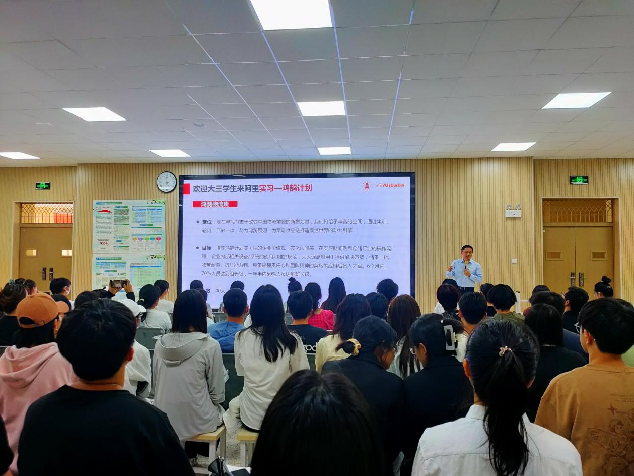 招聘会由学院党委书记保伟主持。他谈到,学院能够和阿里巴巴集团这样的互联网和电子商务顶尖头部企业建立合作关系,并给同学们提供优质实习就业岗位,是学院的荣幸更是同学们的一份幸运。他鼓励同学们积极应聘,努力成为阿里巴巴集团的一员。
