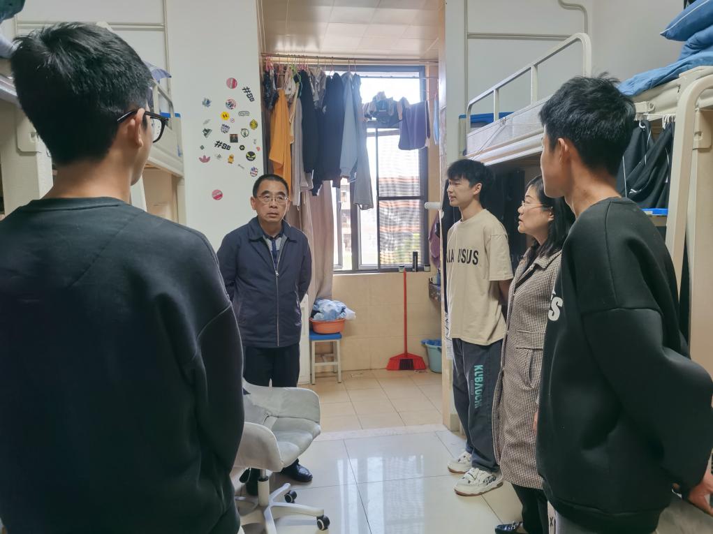 为进一步关心学生学习生活,了解学生的学习生活情况和思想状况,3月30日晚,校党委委员、副校长胡海彦深入中华职业学院怡华4栋男生宿舍走访。学院副院长宁东玲及学院教师闵辉煌陪同走访。