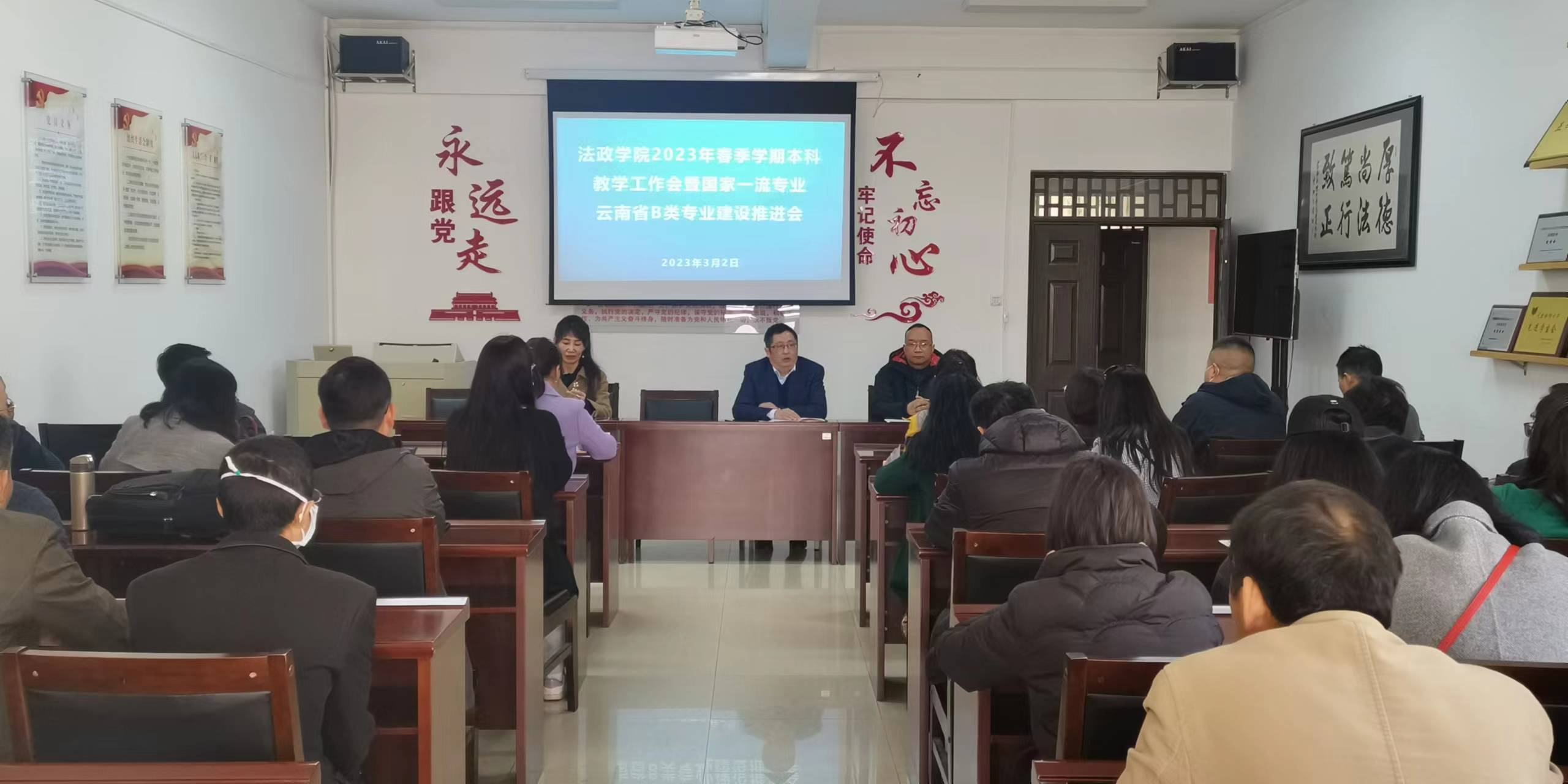 3月2日,法政学院在博远楼305,召开2023年春季学期本科教学工作会暨国家一流专业和云南省B类专业建设推进会。会议由学院副院长石现明主持,学院全体教职工参加。