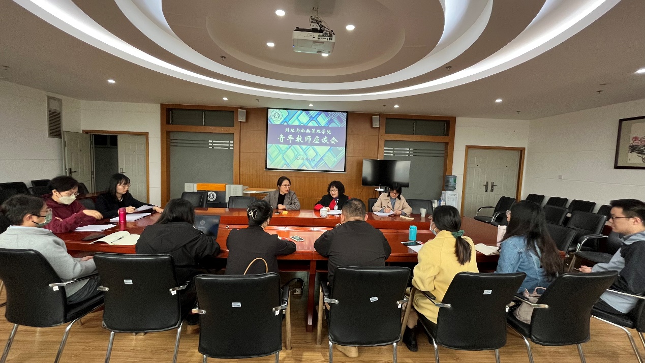 为进一步了解青年教师诉求,促进青年教师快速成长,3月9日,财政与公共管理学院在逸夫楼923召开青年教师座谈会。会议由学院党委书记荣小红主持,党委副书记王晓芬、工会主席杨燕红以及学院8名青年教师参加了会议。