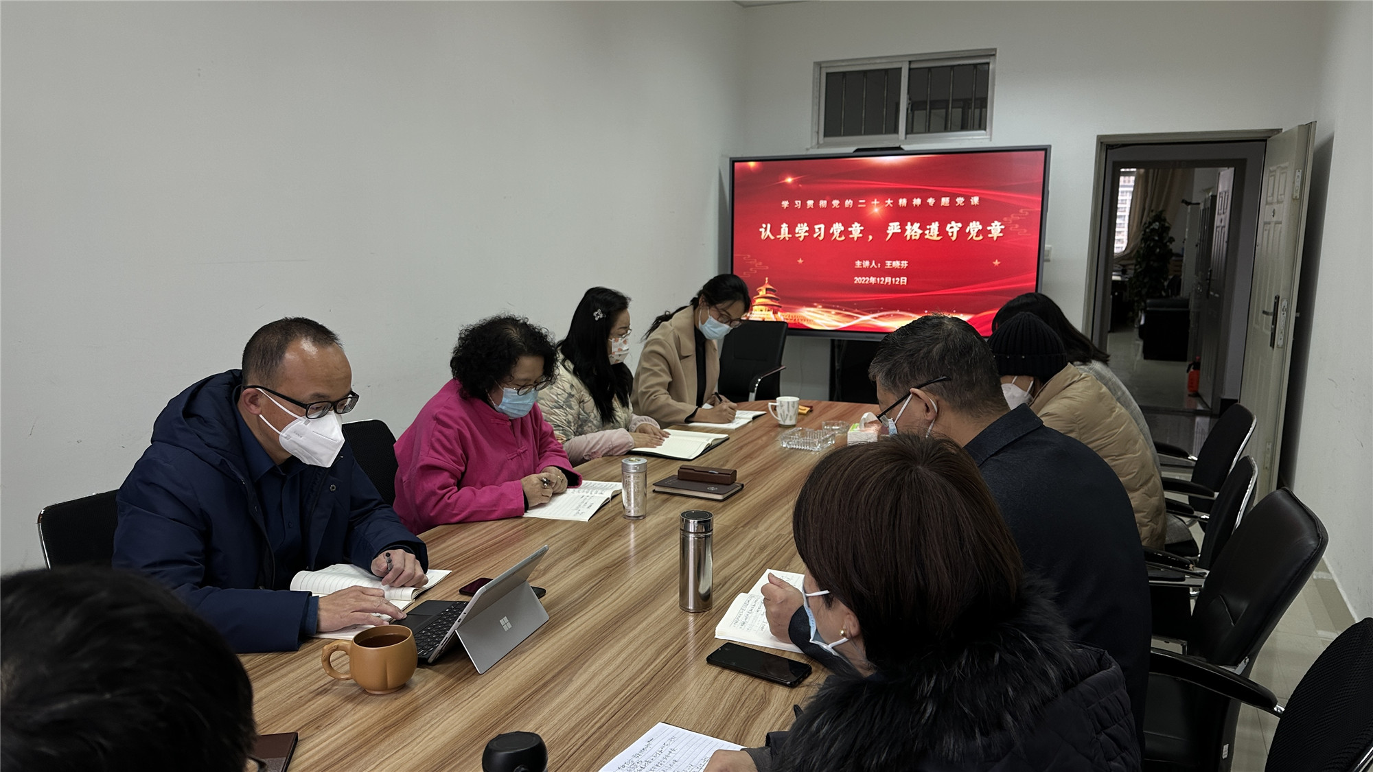 12月12日上午,财政与公共管理学院党委开展理论学习中心组专题学习,党委副书记王晓芬以“认真学习党章,严格遵守党章”为主题领学,全体党委委员参加学习。