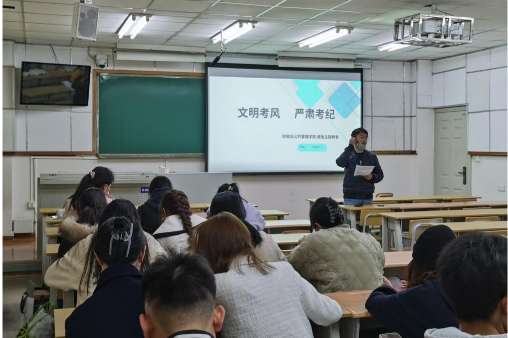 为引导学生积极备考、诚信应考,2月19日,财政与公共管理学院学生管理科、团委组织全院班级开展“文明考风 严肃考纪”诚信考试主题教育活动,活动以主题班会、主题团日等形式进行。