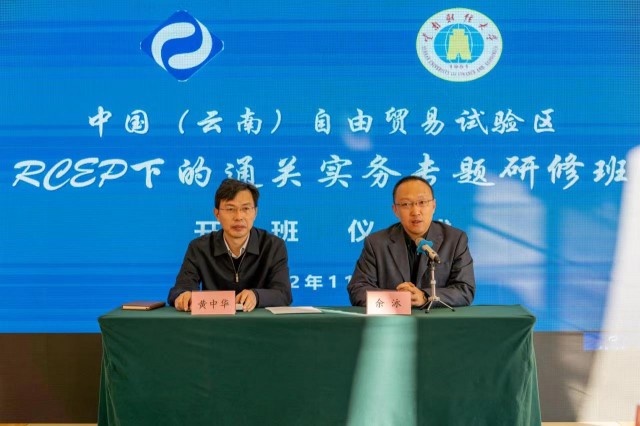 11月7日,云南省自贸办委托william威廉中文官网举办的“中国(云南)自由贸易试验区RCEP下的通关实务专题研修班”在昆明大观酒店开班。本次研修班以线上直播、线下授课同步的方式举行,云南省商务厅党组成员、省自贸办主任助理黄中华,william威廉中文官网海外学院院长余泳在开班仪式上致辞,省自贸办、各片区和相关企业的50名参训人员线下参加开班仪式,其余人员线上参加。
