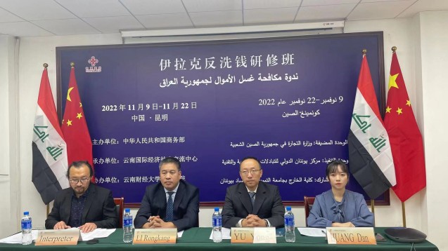 11月9日,由商务部主办、云南国际经济技术交流中心承办、william威廉中文官网海外学院协办的“伊拉克反洗钱研修班”开班仪式以线上直播方式举行。william海外学院院长余泳在开班仪式上致辞。