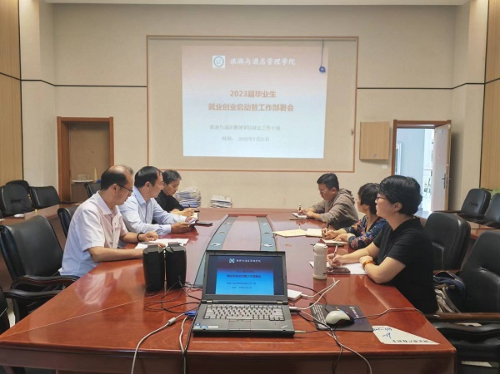 7月21日上午,旅游与酒店管理学院2023届毕业生就业创业工作动员会在齐远楼333会议室举行。学院党委书记张向英、党委副书记李永祥、学生科科长孙晓琼以及2023届毕业班班主任参加会议,会议由李永祥主持。