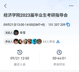 为调动本科学生学习积极性、主动性,帮助2023届毕业生做好硕士研究生报名工作,9月21日中午,经济学院举行考研政策线上宣讲会。学院副院长李帆、李亚波,院团委负责人幸莹以及2023届60多名毕业生参加了会议。