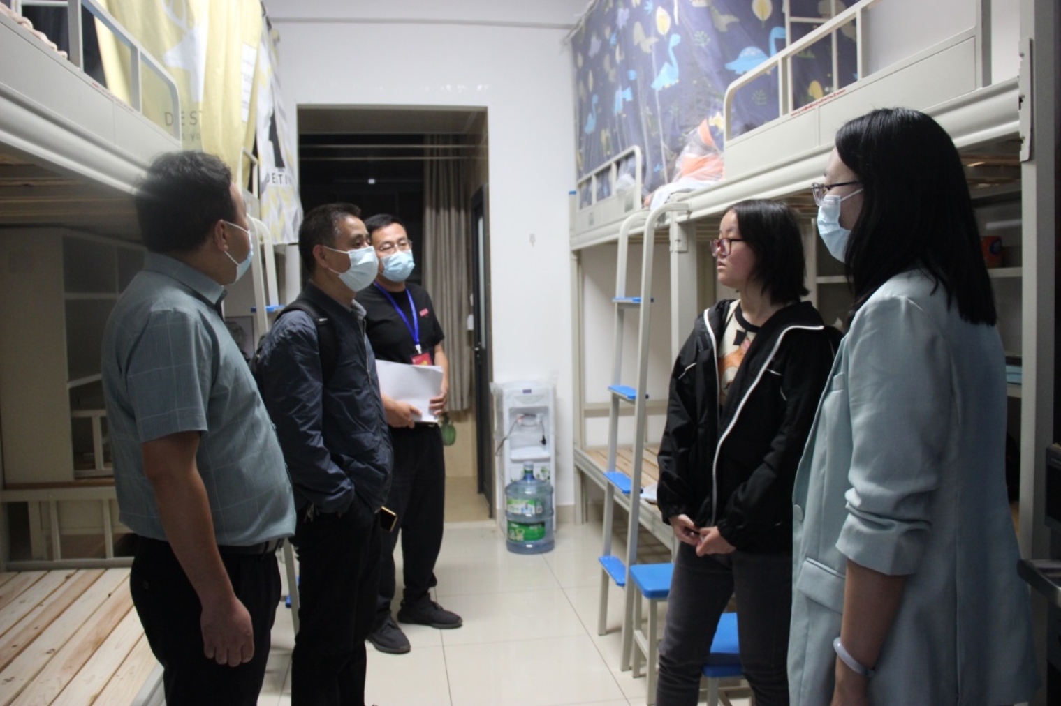学院院长李小军,学院党委书记保伟,学院党委副书记张玉琨、于浩对书院的新生宿舍进行了走访,并向学生介绍了书院跨专业集中住宿的初衷和目的,即让不同专业学生实现交流互通,让学生增长见识,勇于创新。同时,他们深入了解同学们的学习、生活,鼓励书院学生做好规划,通过书院的学习和生活不断提升职业素养和能力。