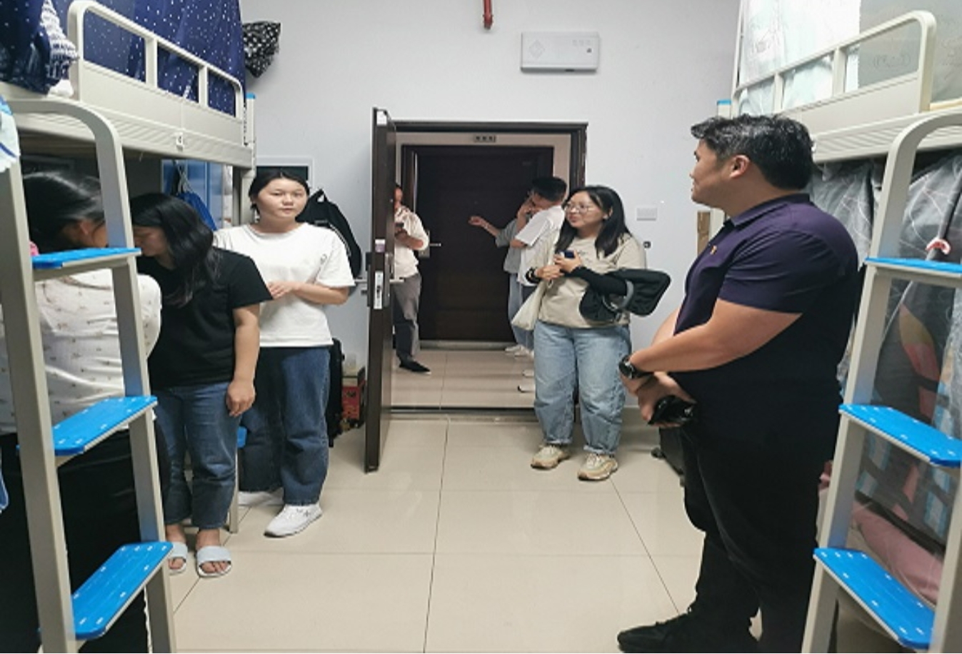 为深入了解疫情防控常态化下学生的学习、生活、思想状况,更好服务学生,6月26日晚上,中华职业学院党委书记沙磊,党委副书记保伟、于浩和全体辅导员、班主任深入走访学生宿舍。