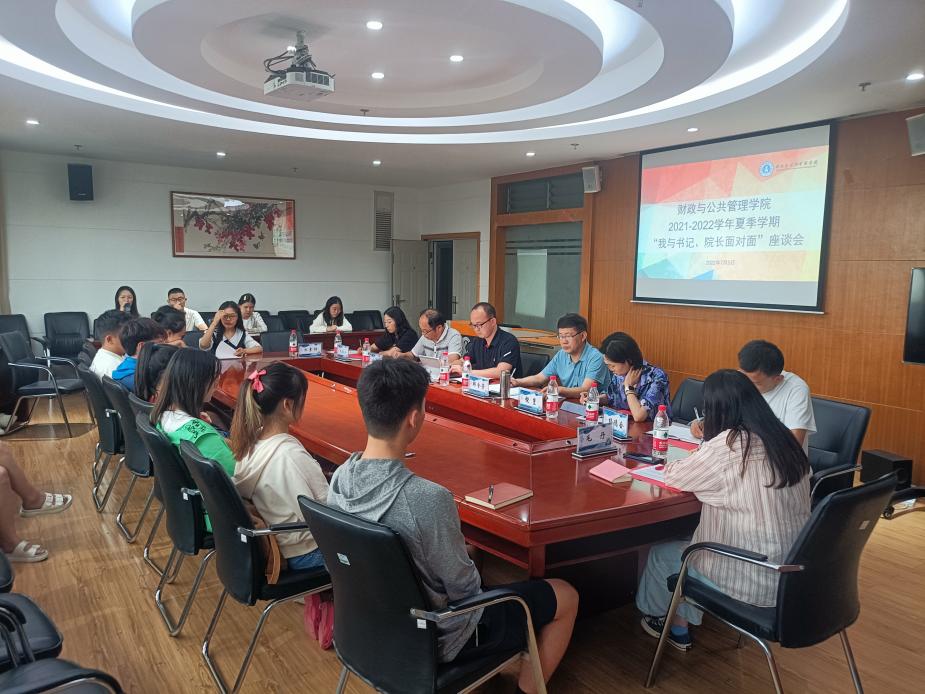 7月5日下午,财政与公共管理学院在南院逸夫楼923会议室开展“我与书记、院长面对面”座谈。院长缪小林,副院长韩全芳、和立道,全体辅导员及学院全日制本硕学生代表参加座谈。