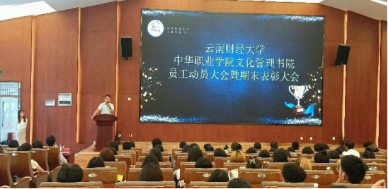 7月8日中午,中华职业学院在鹏云一栋101报告厅举行文化管理书院2.0版本建设动员暨年度表彰大会。图书馆党支部书记朱睿,中华职业学院党委副书记保伟、张玉琨、于浩,图书馆各部门负责人及中华职业学院文化管理书院全体员工参加会议。会议由文化管理书院指导教师罗香玉主持。