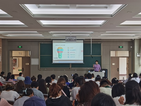 杨蜀云结合2022年中国睡眠研究报告探讨为何疫情背景下容易失眠焦虑甚至抑郁,她从睡眠结构、作用与功能、失眠危害、良好睡眠标准带领大家重新认知睡眠,从睡眠节律、减压、管理情绪、建立睡眠条件反应、运动提高睡眠质量等方面给出获得好睡眠的建议。此外,杨蜀云还强调睡眠障碍也可能与精神障碍有关,在推荐正规医院及科室资源的基础上,她还介绍了大学生精神障碍门诊诊疗过程,并从急性期治疗、巩固期、维持期讲解了休学后关于疾病治疗及康复的注意事项。最后杨蜀云对师生们提出的“室友经常说梦话还不自知”“对失眠症如何用药”等问题进行了详细解答。