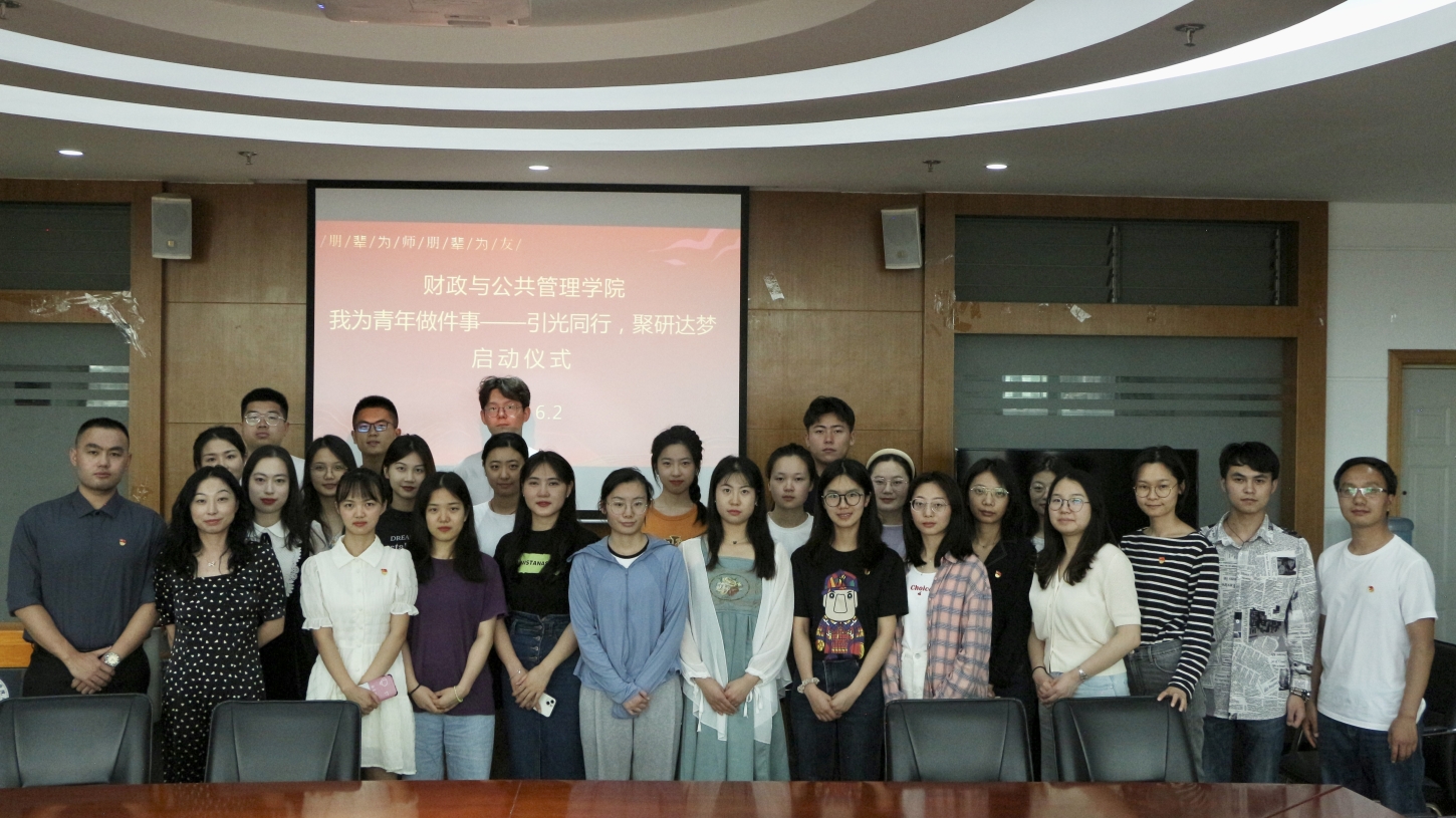 6月2日,财政与公共管理学院在逸夫楼923室举办“我为青年做件事——引光同行,聚研达梦”活动启动仪式。活动旨在选拔一批优秀硕士研究生,一对一联系本科班级,充分发挥研究生在学业规划、专业学习、科学研究等方面的引领作用,建立互帮互助、共同进步的良好学习氛围。学院相关科室负责人、研究生各党支部书记、院研究生会学生骨干、研究生朋辈导师志愿者及本科学生班长代表参会。