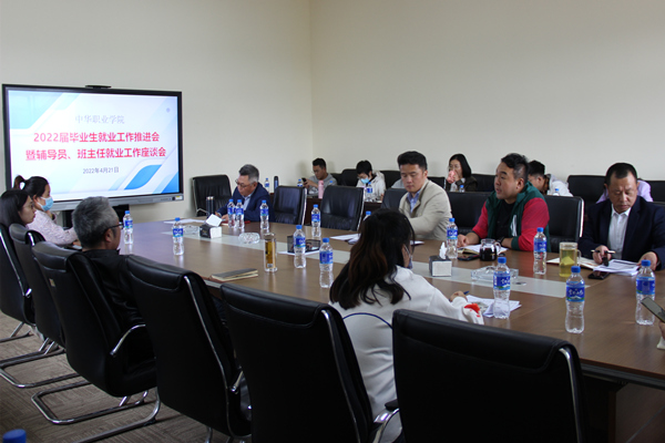 4月21日,中华职业学院在安宁校区修远楼512室召开2022届毕业生就业工作推进会暨辅导员、班主任就业工作座谈会。学院党委书记沙磊、党委副书记保伟、就业与创业服务办公室主任杨廷德与各教学部辅导员、毕业班班主任进行交流,倾听大家对就业工作的所思、所想,帮助大家解决就业工作中遇到的困难和问题,进一步推进2022届毕业生就业工作。