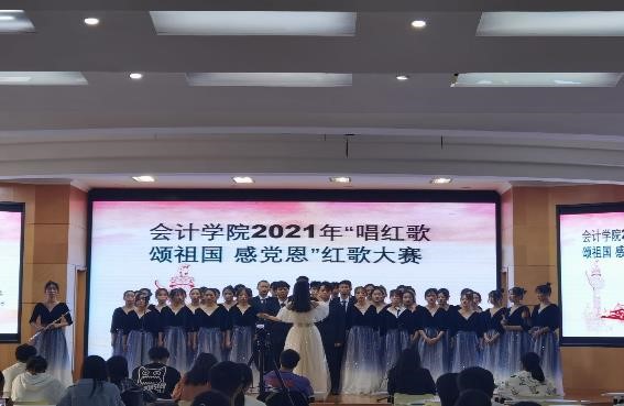 在中国共产党成立100周年之际,为弘扬爱国精神,增强班级凝聚力,丰富校园文化生活,11月5日,会计学院在国工报告厅举办“唱红歌 颂祖国 感恩党”红歌合唱比赛。