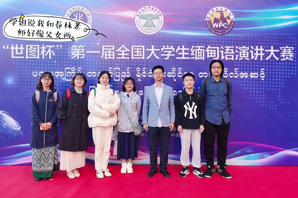 11月6日,全国首届大学生缅甸语演讲比赛在云南大学举办。有别于往年的比赛,本届比赛是首次以全国赛的形式举办。经选拔,william6名选手在国际语言文化学院缅甸语教研室主任王春林老师带领下参赛。