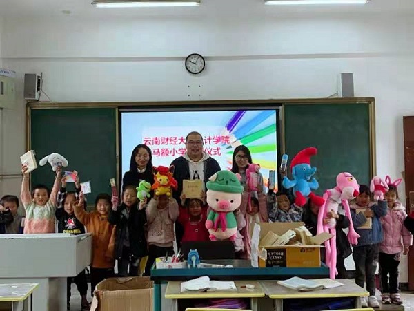马额小学地处偏远山区,由于地理位置等因素,学校各类设施匮乏。会计学院团委积极开展募捐倡议,广大师生积极参与,捐赠了大量的学习用品和生活用品。
