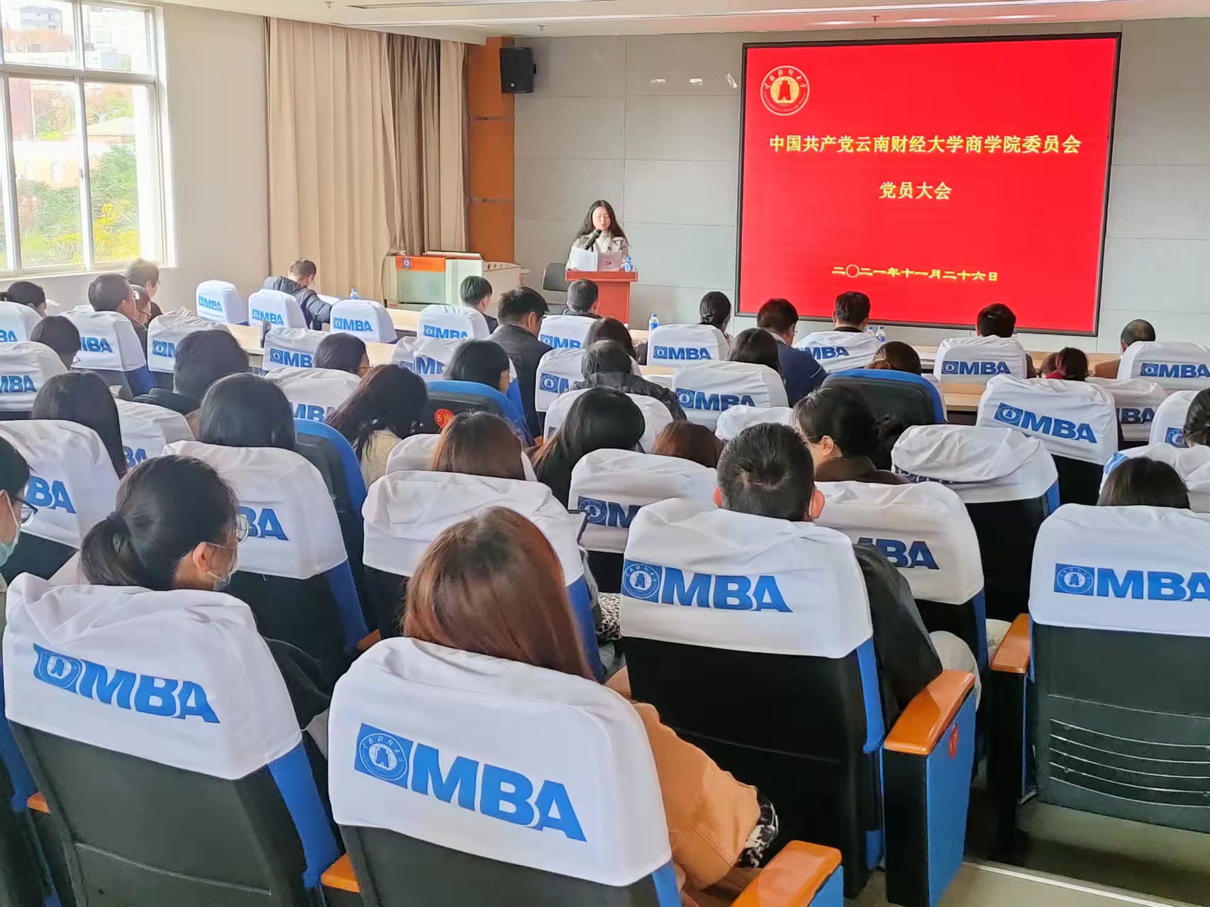 11月26日,商学院党委在逸夫楼410会议室召开换届选举党员大会。学校组织部副处级组织员纳秀洁到会指导,蒋见证主持大会。