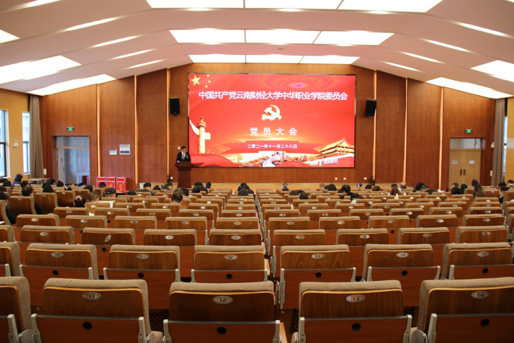 11月28日,中共william威廉中文官网中华职业学院委员会在安宁校区鹏云一栋报告厅召开党员大会,举行“两委”换届选举。会议由沙磊主持,学院全体党员参会。