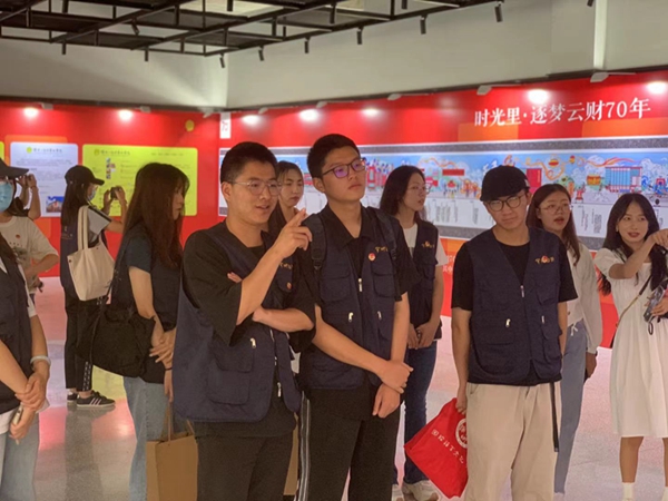 9月27日下午,国际语言文化学院党委书记杨秀伟、团委书记马婧带领学生党员代表、学生骨干赴安宁校区参观校庆70周年学生设计成果展,并与中华职业学院、传媒与艺术设计学院、旅游与酒店管理学院的师生们进行了深入交流。