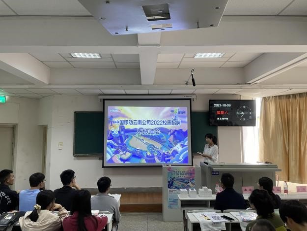 10月9日上午,信息学院在卓远楼115教室举办中国移动通信集团云南有限公司2022届毕业生招聘宣讲会。