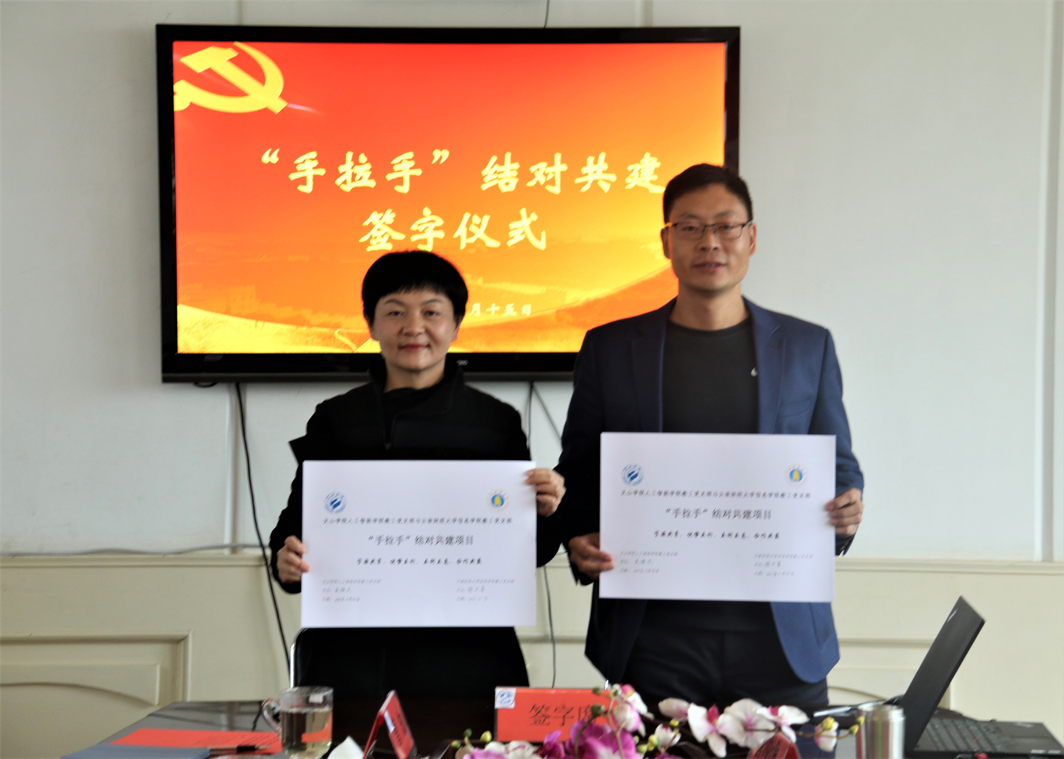 两院教工、学生党支部代表举行“手拉手”结对共建签字仪式,并就后续“手拉手”结对共建活动内容展开讨论。双方表示,将借力共建平台,努力形成“资源共享、优势互补、互利互惠、合作共赢”的工作格局。