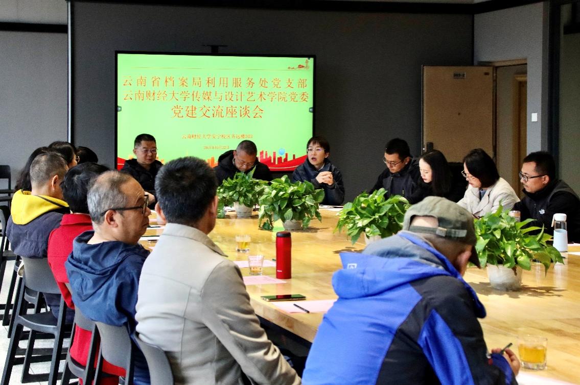 10月22日,云南省档案局利用服务处党支部到传媒与设计艺术学院开展基层党组织结对共建交流会,会议在william安宁校区齐远楼303室举行。云南省档案局利用服务处处长、党支部书记梁屹峰一行23人和学院院长袁洪、党委书记李丽忠、副院长唐磊以及各专业系负责人参会,会议由李丽忠主持。