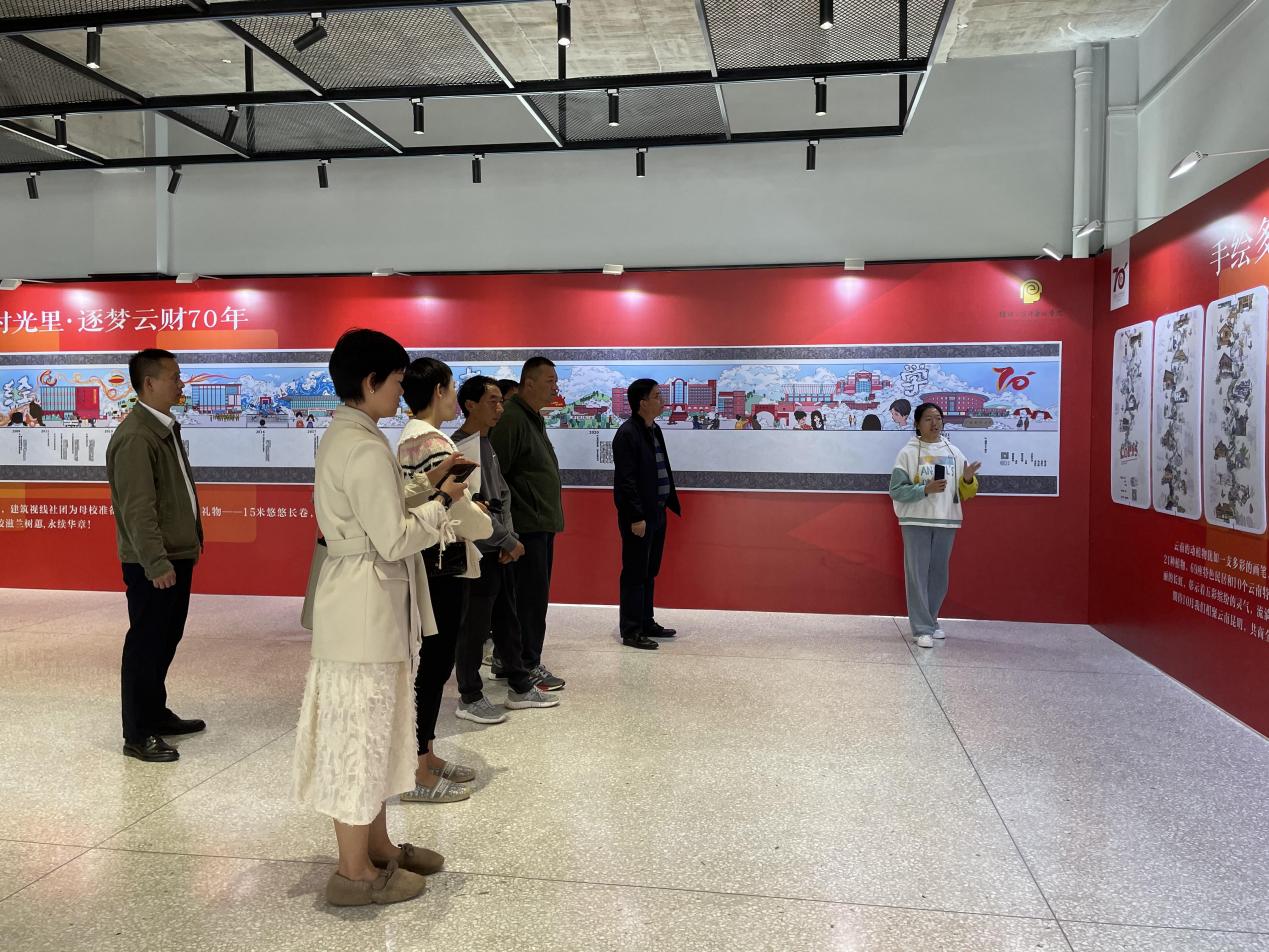 9月24日至10月22日,传媒与设计艺术学院在william威廉中文官网安宁校区齐远楼一楼大厅举办《云财七十年手绘长卷》暨毕业生优秀作品展,展出《手绘云财七十年》《手绘多样云南》2幅师生手绘长卷和76位2021届毕业生的优秀设计作品。期间,云南省委教育工委、省教育厅党史学习教育第八巡回指导组一行,我校党委书记王建颖书记、党委副书记谢昌浩及有关部门负责人到现场参观指导。
