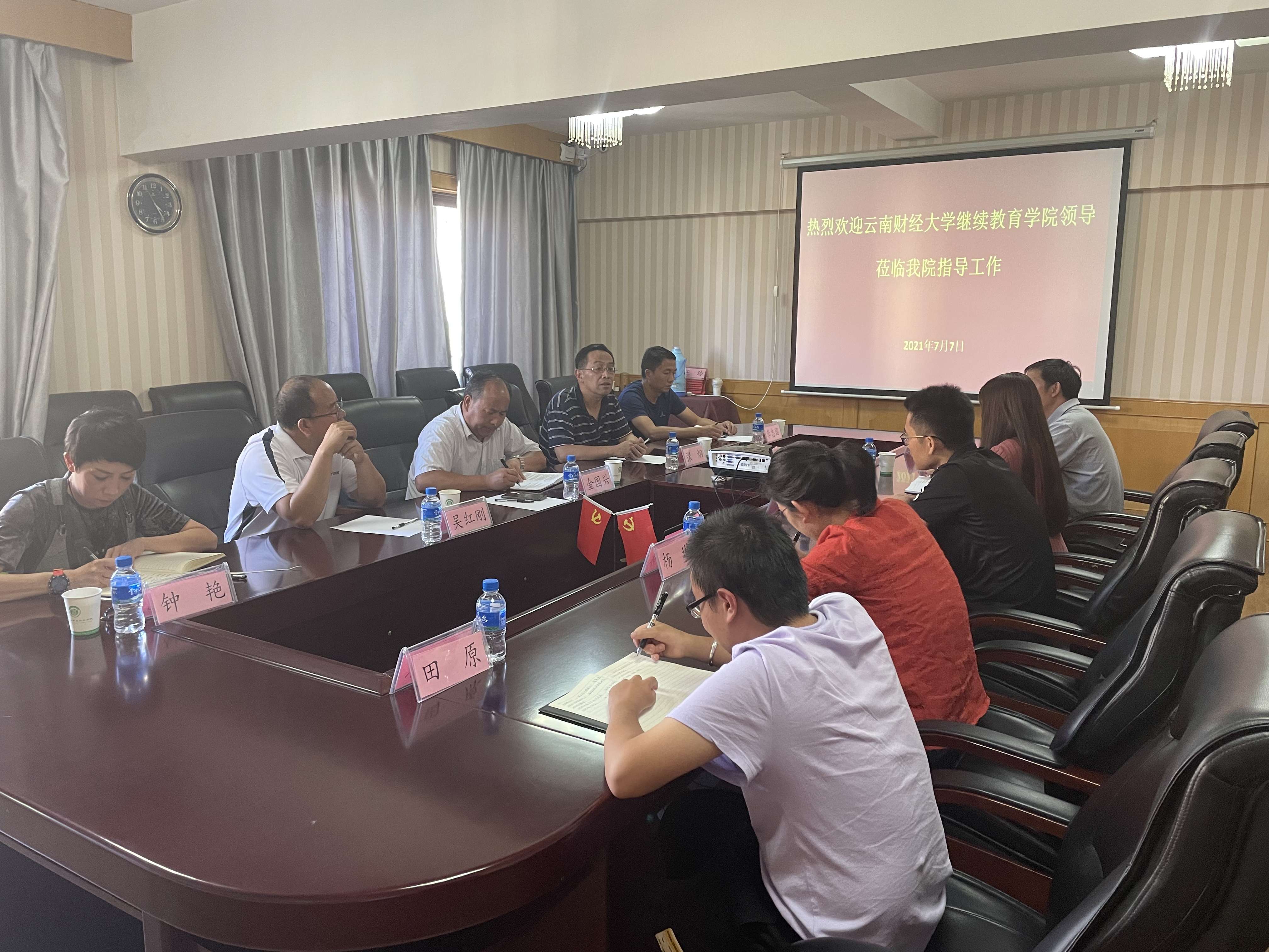 7月7日下午,继续教育学院直属党支部书记金国兴、院长张炯、副院长吴红刚、学历中心主任钟艳、李志国一行5人,前往即将与william合作开展函授继续教育的云南农业职业学院继续教育学院走访调研。