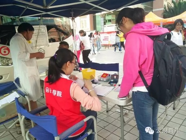 9月17日,会计学院青协分别在william龙泉路校区南院荟华广场,北院汇理大道开展“汇聚青春血液”之献血车进校园志愿服务活动。