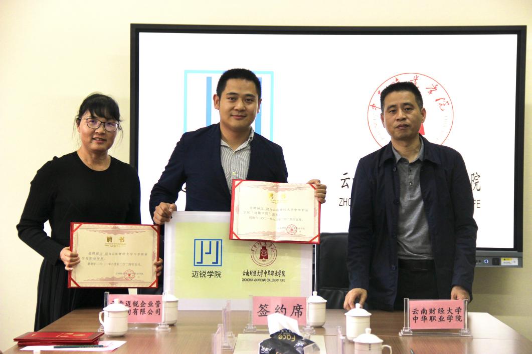 双方举行签约仪式,由李小军为三家企业学院进行授牌仪式,并授予名誉院长聘书及颁发职业导师聘书。云蓝学院、昆明融创万达文华学院、迈锐学院的企业代表对中华职业学院领导班子的大力支持表示感谢,他们表示,企业发展离不开高素质人才,需要加大同高校深度合作的力度。校企合作搭建了实践中学习,学习中实践的平台,为云南经济建设培养更多专业的高素质人才,为企业持续发展和高等职业教育创新提供动力