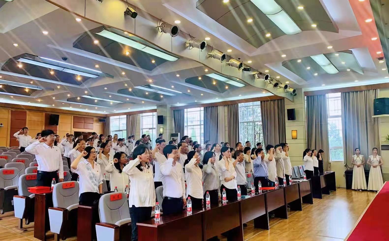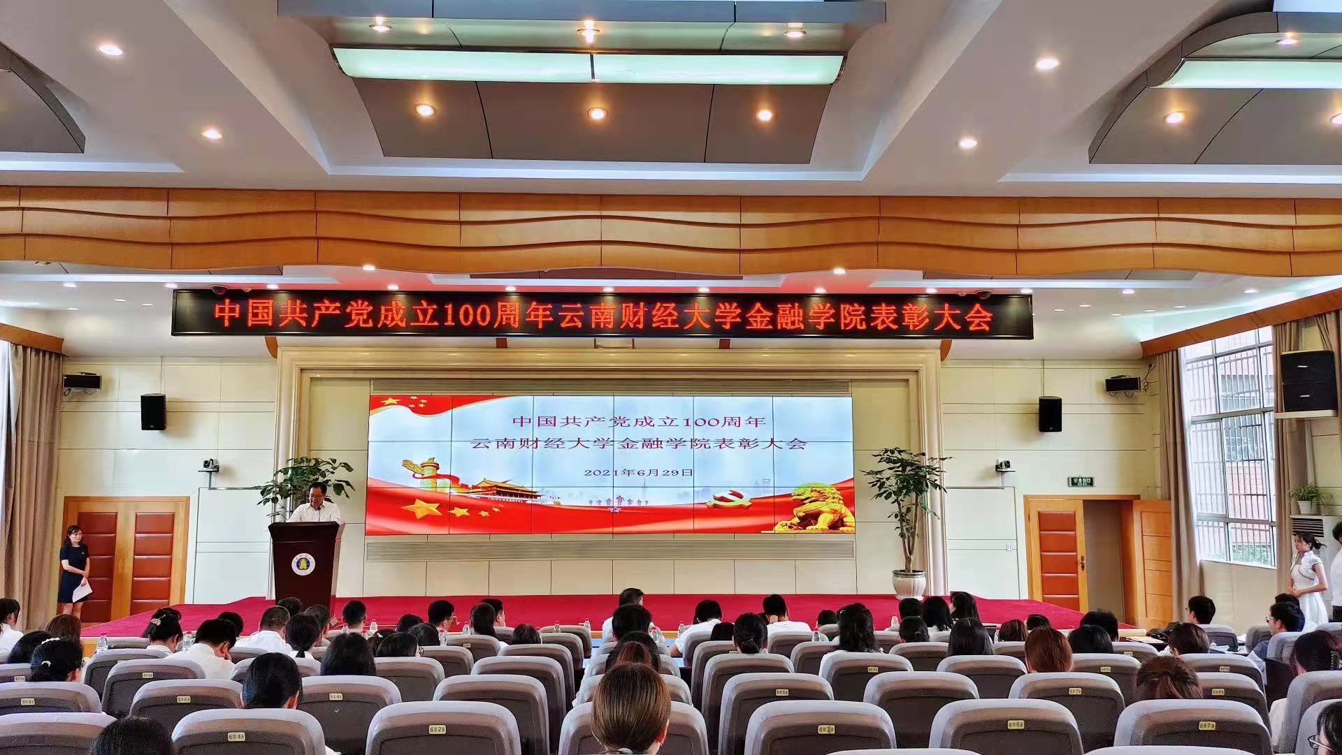 6月29日中午,金融学院党委在凌云楼北附201报告厅举行学院表彰大会,庆祝中国共产党成立100周年,开展新党员宣誓、老党员重温入党誓词、优秀共产党员表彰以及党课“开讲啦”活动。活动由党委副书记汪薇萍主持,全体党委委员、师生党员共计120人参加。