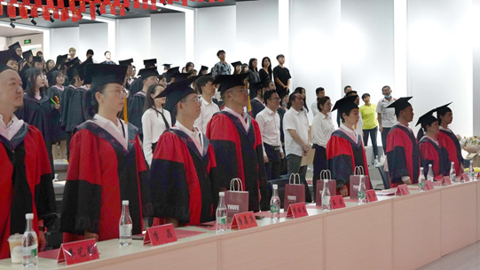 袁洪为毕业典礼致辞,叮嘱毕业生们学无止境,勿忘“好学笃行,厚德致远”的校训。李晶宣读优秀毕业生及学院优秀奖表彰决定,学院领导依次为获得表彰的同学颁发荣誉证书。赵晓红、李帆、杨腾渊分别作为师生代表上台发言。