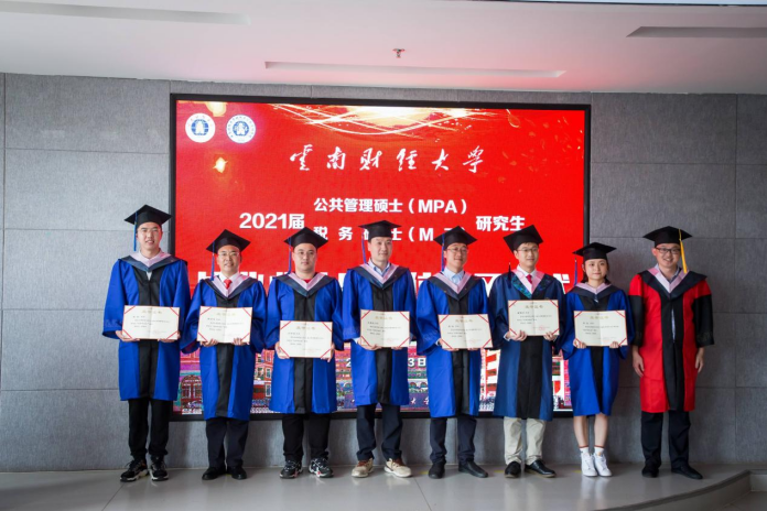 朱文宣读2021届公共管理硕士(MPA)、税务硕士(MT)研究生“优秀毕业生”“优秀学位论文获得者”和“优秀学生干部”的表彰决定,与会领导和导师代表为获奖毕业生代表颁发荣誉证书。