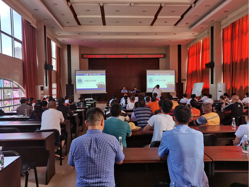 5月18日下午,后勤产业集团党委六支部为开展好支部党史学习教育“我为群众办实事”实践活动,进一步提高支部职工的交通安全法规意识,邀请昆明市公安局交通警察支队车辆管理所驾管科段海警官和王舒锦警官为六支部党员、群众做交通安全知识讲座。