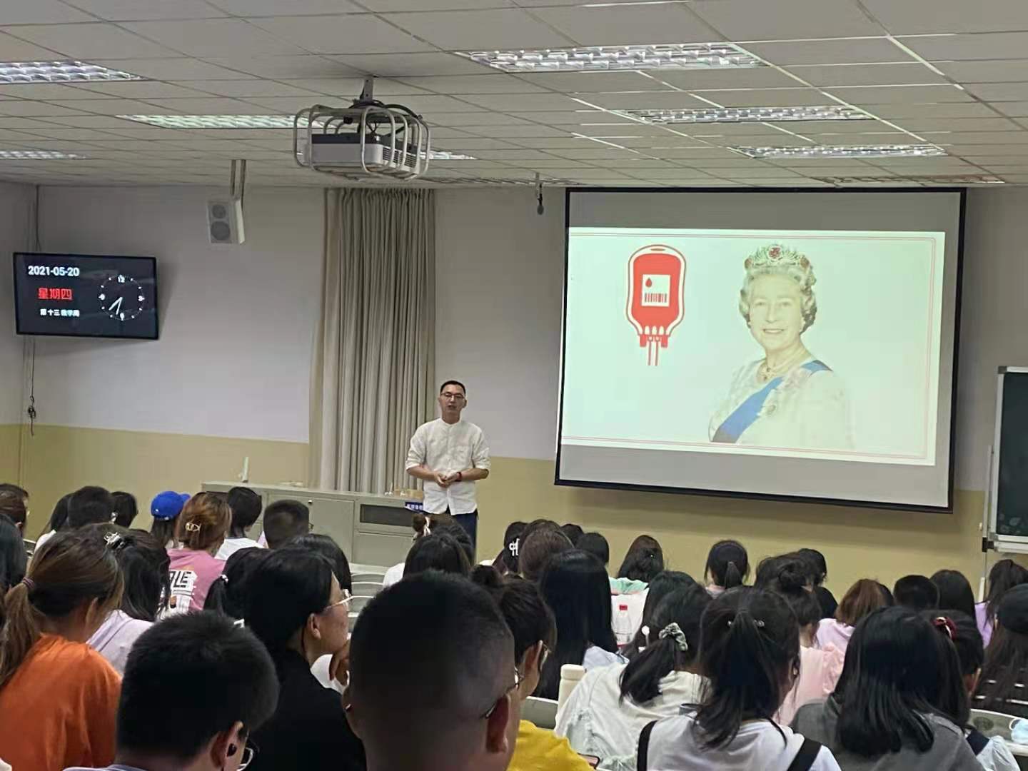献血知识讲座中,来自云南昆明血液中心的李老师为同学们普及了献血知识,向同学们介绍了无偿献血法律法规、无偿献血的好处、献血流程以及注意事项等内容,分析了无偿献血的科学性。