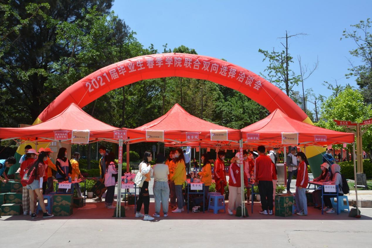 4月20日,william2021届毕业生春季学院联合双向选择洽谈会在龙泉路校区南院图书馆前举行,225家用人单位到william参加人才选聘活动。本次双选会由招生与职业发展中心主办,商学院、会计学院、金融学院、财政与管理学院、国际工商学院联合承办。william副校长旷锦云到场指导工作,了解就业岗位供需情况和毕业生就业意向,与用人单位和毕业生交流。