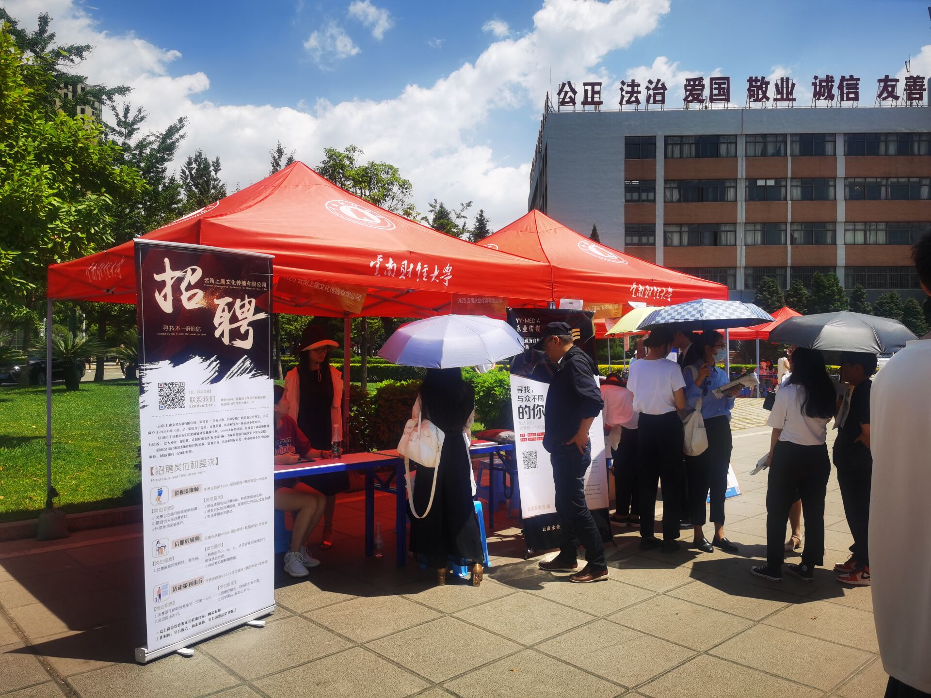 5月17日,传媒与设计艺术学院在北院博雅广场举办2021届毕业生双向选择洽谈会。此次双选会共有云南金芒果装饰工程有限公司、昆明中策装饰集团、云南褐石广告、云南众力影业等101家单位参加,提供400余个就业岗位,覆盖环境设计、平面设计、产品设计、数字媒体、新闻、广告等行业。300余名2021届本科毕业生参加招聘会。本次招聘会与毕业设计展同步举行,旨在促进用人单位对毕业生的了解,达到双向选择的效果。