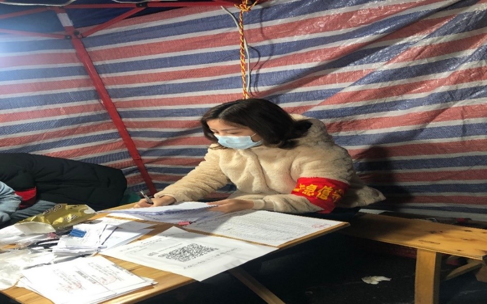 研究生预备党员李红梅。1月29日,接到村委会发出的通知:“号召党员同志积极主动参与疫情防控工作,请有意者立即前往村道路交通卡点,支援疫情防控工作。”李红梅当即报名,主动投身一线,成为四川省巴中市八庙镇何家坪村三社的一名疫情防控志愿者。她主要负责对进出村人员进行登记、测体温、消毒,认真耐心劝返外村人员和访亲人员;做好村民思想工作,宣传疫情防控政策;反复告知村民养成良好的卫生习惯,出门佩戴口罩,不走亲访友,不聚众聊天等工作。“作为一名志愿者,每天接触的人很多,心里难免有压力,回到家第一件事就是对自己做一个全面消毒。”李红梅笑着说道:“疫情就是命令,防控就是责任,作为党员,助力打好这次疫情阻击战,我义不容辞”。