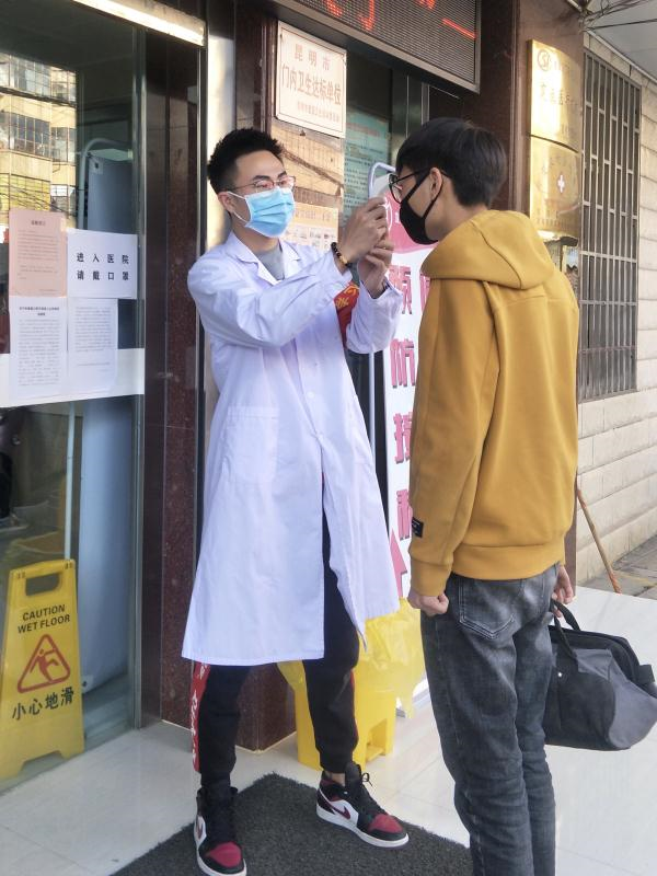 本科生入党积极分子张钧涵。主动报名加入宜良县的疫情防控工作,到宜良县各大医院协助医务人员做一些力所能及的事情,例如为进出医院的患者测量体温、喷洒消毒液、提醒市民佩戴口罩、为市民宣传新冠肺炎的预防措施等等。除此之外,他还主动承担任起到宜良县部分卡点配送餐食的工作,保障卡点工作人员的一日三餐。张钧涵在志愿活动中以正式党员的身份严格要求自己,在做好自身防护的同时秉承使命,自觉将内化于心的责任担当外化于行,用实际行动积极向党组织靠拢。