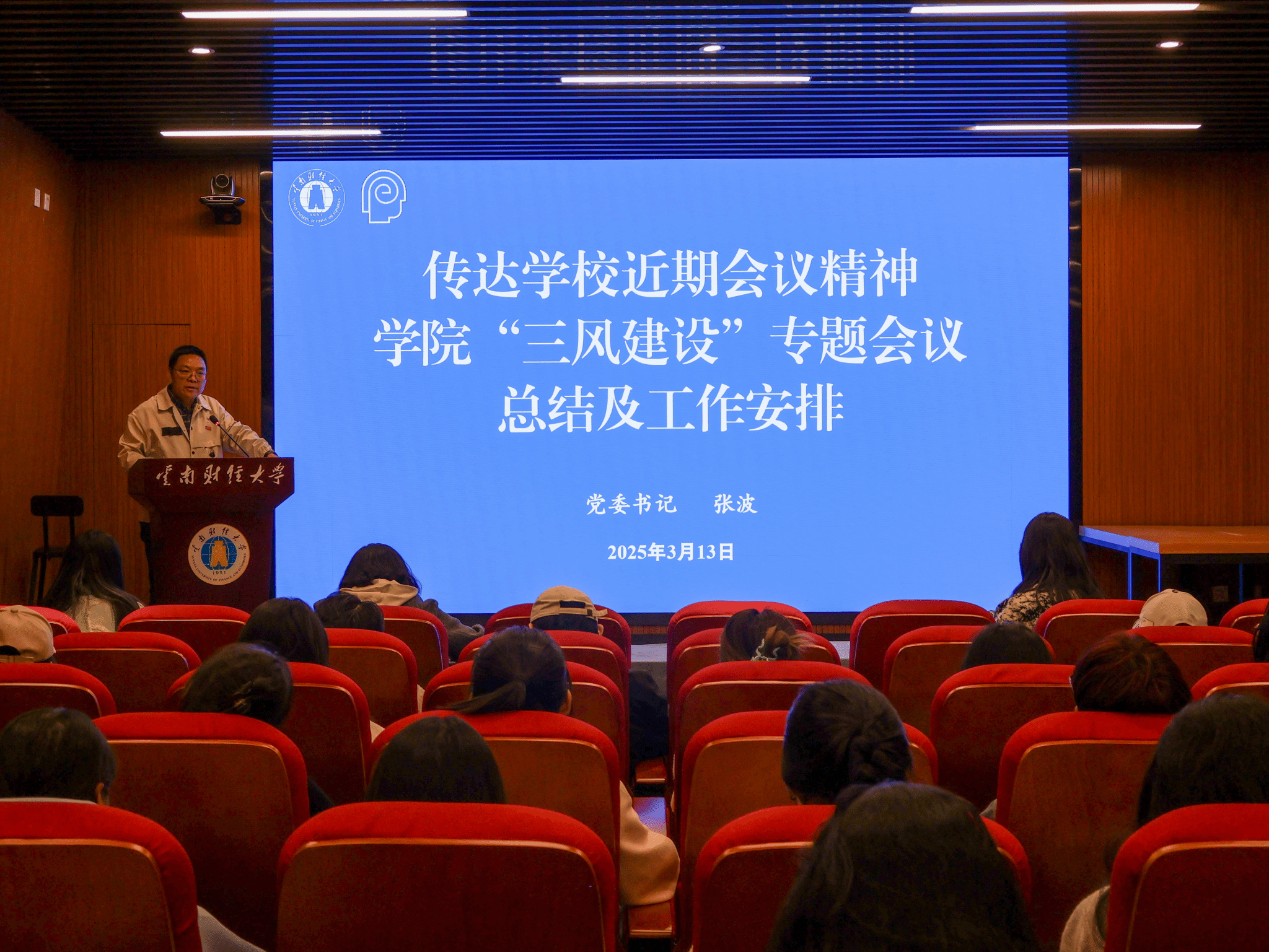 为进一步加强“三风”建设工作,深入宣传党的民族宗教政策,3月13日,传媒与设计艺术学院在齐远楼106报告厅举行“三风”建设工作推进会。学院党委书记张波、党委副书记赵小玎、相关科室负责人及学院全体班级团支部书记、班长,各学生组织主要团学骨干,学生党员代表90余人参加会议。会议由团委书记谢天娇主持。