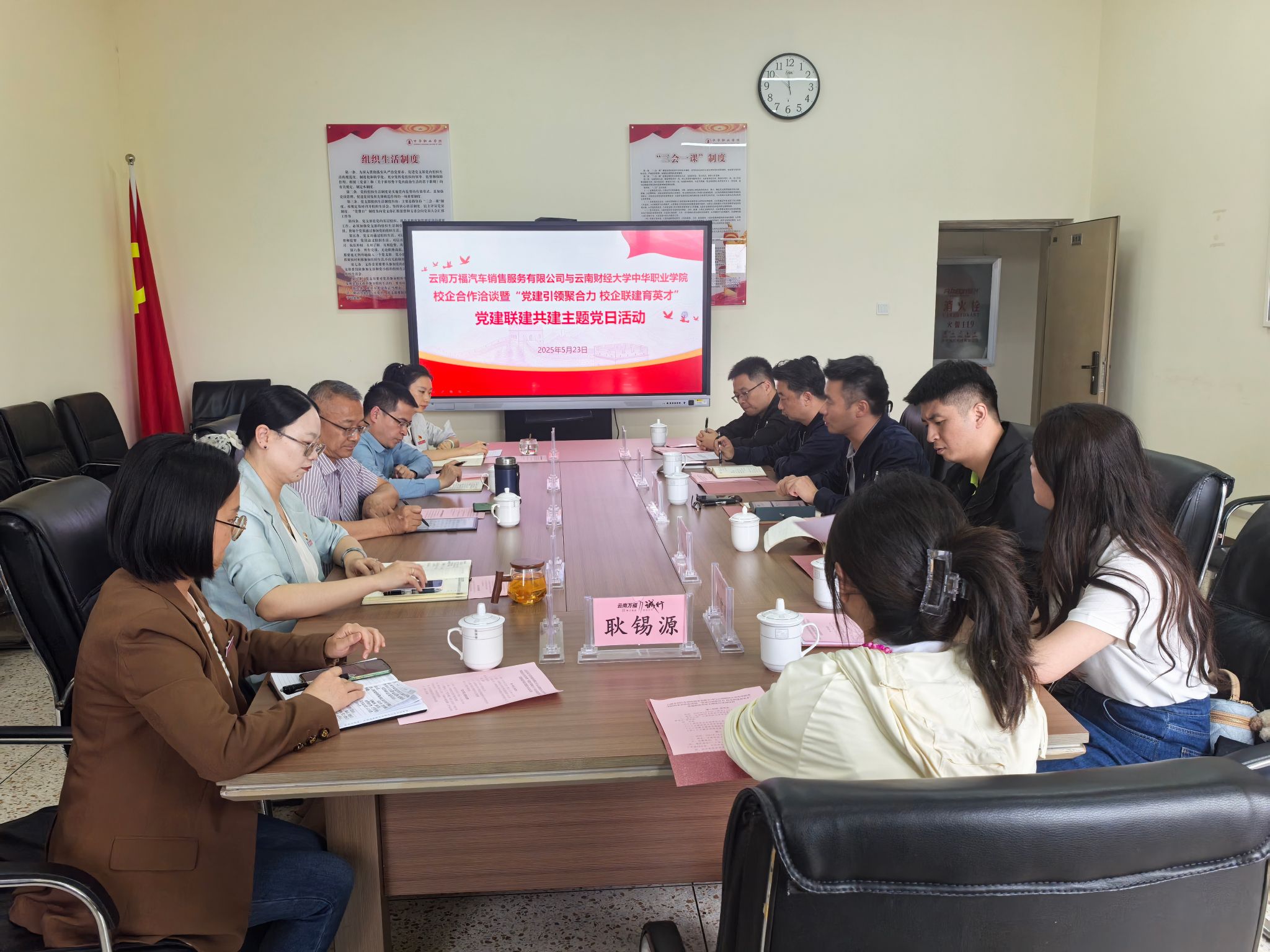 5月23日下午,中华职业学院与云南万福汽车销售服务有限公司校企合作洽谈暨“党建引领聚合力 校企联建育英才”主题党日活动在安宁校区修远楼513举行。