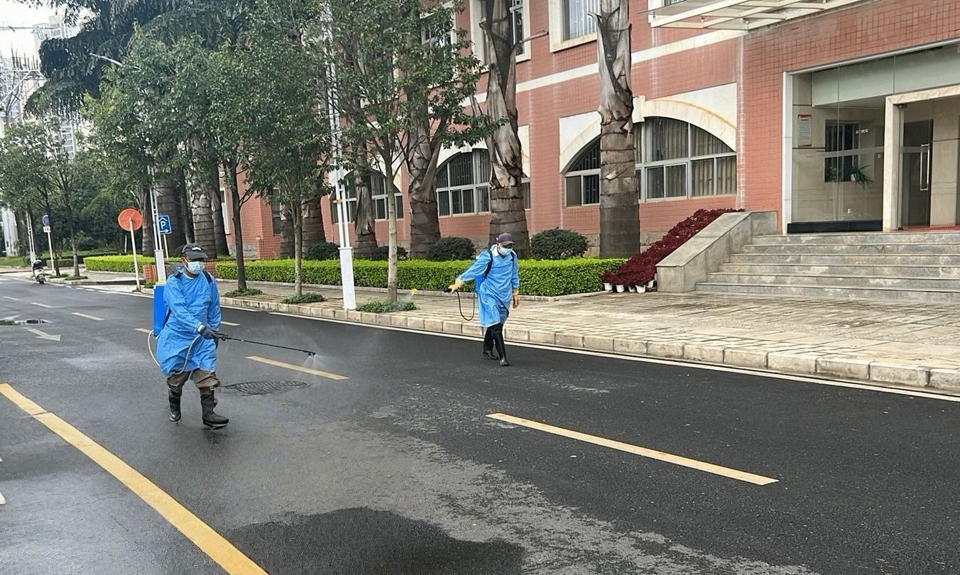 针对校园易积水路段,集团组织力量及时清理。积极开展校园主干道、教学楼周边区域的淤泥、落叶冲洗清洁工作,并对低洼积水区域、下水道口、垃圾桶周边等重点部位进行了6次喷洒消毒,有效保障雨后校园环境整洁与卫生安全。