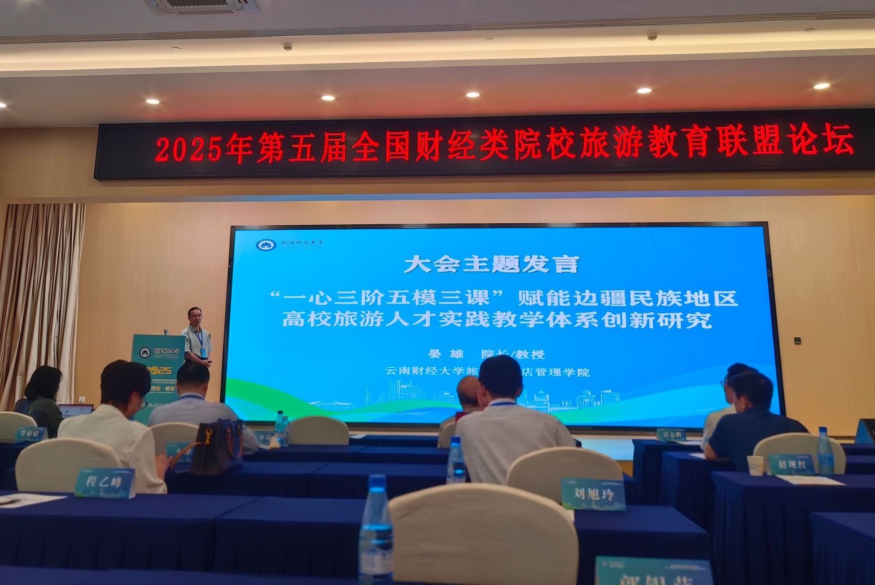 论坛上,晏雄作题为《“一心三阶五模三课”赋能边疆民族地区高校旅游人才实践教学体系创新研究》的主题发言,围绕边疆民族地区高校旅游人才培养体系的特色优势及创新范式展开交流,结合william多维度实践育人体系、民族团结进步示范创建及“全空间、无国界”校企协同育人模式等分享了旅游教育领域的实践经验,为财经类院校旅游人才培养提供了新思路和新观点,引发与会者的广泛共鸣。