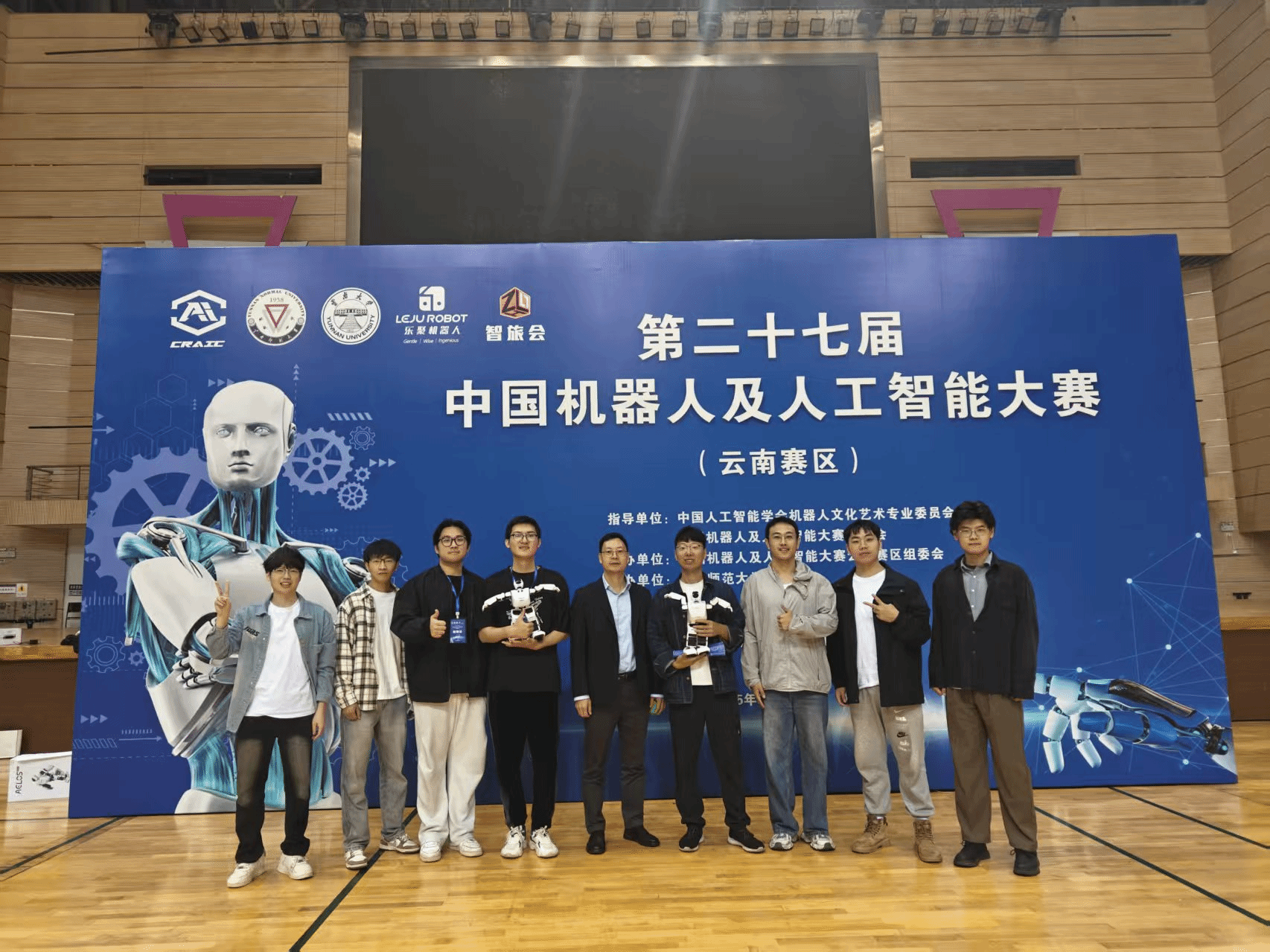 6月21日,在第27届中国机器人及人工智能大赛云南赛区角逐中,由徐兴贵老师指导的研究生团队凭借在人工智能核心算法与机器人系统集成上的深度探索,两项参赛作品《A one》和《Aelos智家精灵》从激烈竞争中脱颖而出,双双斩获省级一等奖。