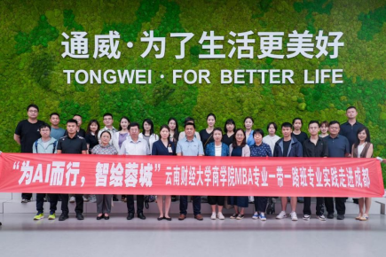 师生走进通威集团旗下的通威太阳能(成都)有限公司,深入了解全流程智能化产线;到通威国际中心(通威集团总部),深入了解到AI技术如何助力农业与新能源双主业实现协同发展,围绕“双主业协同下AI技术纵深应用”展开探讨;走进成都百都科技有限公司,通过真实商业案例拆解系统展示了百度“AI +营销”模式的创新实践。师生们围绕AI数据安全、中小企业适配方案等问题展开热烈探讨,深刻感受到AI技术在数字经济时代对企业运营的颠覆性变革力量。