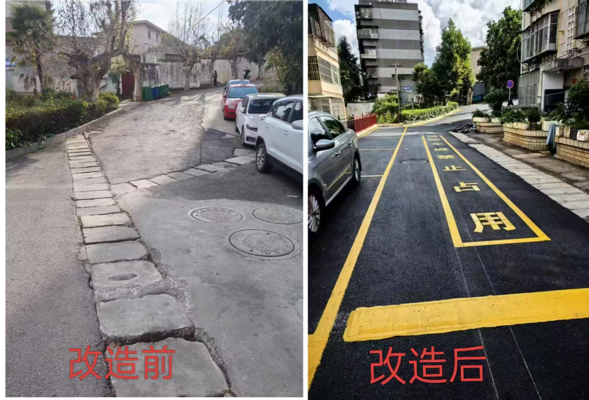 改造后的小区道路平整宽阔,管网设施高效运行,非机动车停车房整洁实用,绿化景观生机盎然,有效解决了老旧小区长期存在的设施老化、功能滞后、环境不佳等问题,得到广大住户的一致好评。