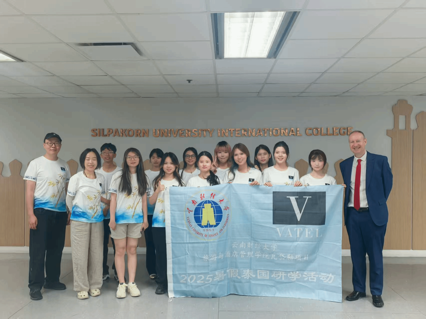 8月3日-8月10日,受瓦岱勒泰国校区(泰国艺术大学)邀请,旅游与酒店管理学院陈彦竹等11名学生在王毓川、陈中科两名教师的带领下参加了法国瓦岱勒泰国校区的国际文化交流活动,这是william师生第5次参加瓦岱勒暑期泰国研学活动。本次活动在法国瓦岱勒国际酒店与旅游管理商学院泰国校区的泰国艺术大学国际学院举办,共有来自中国、印度、日本等17个国家瓦岱勒项目的107名师生参加。
