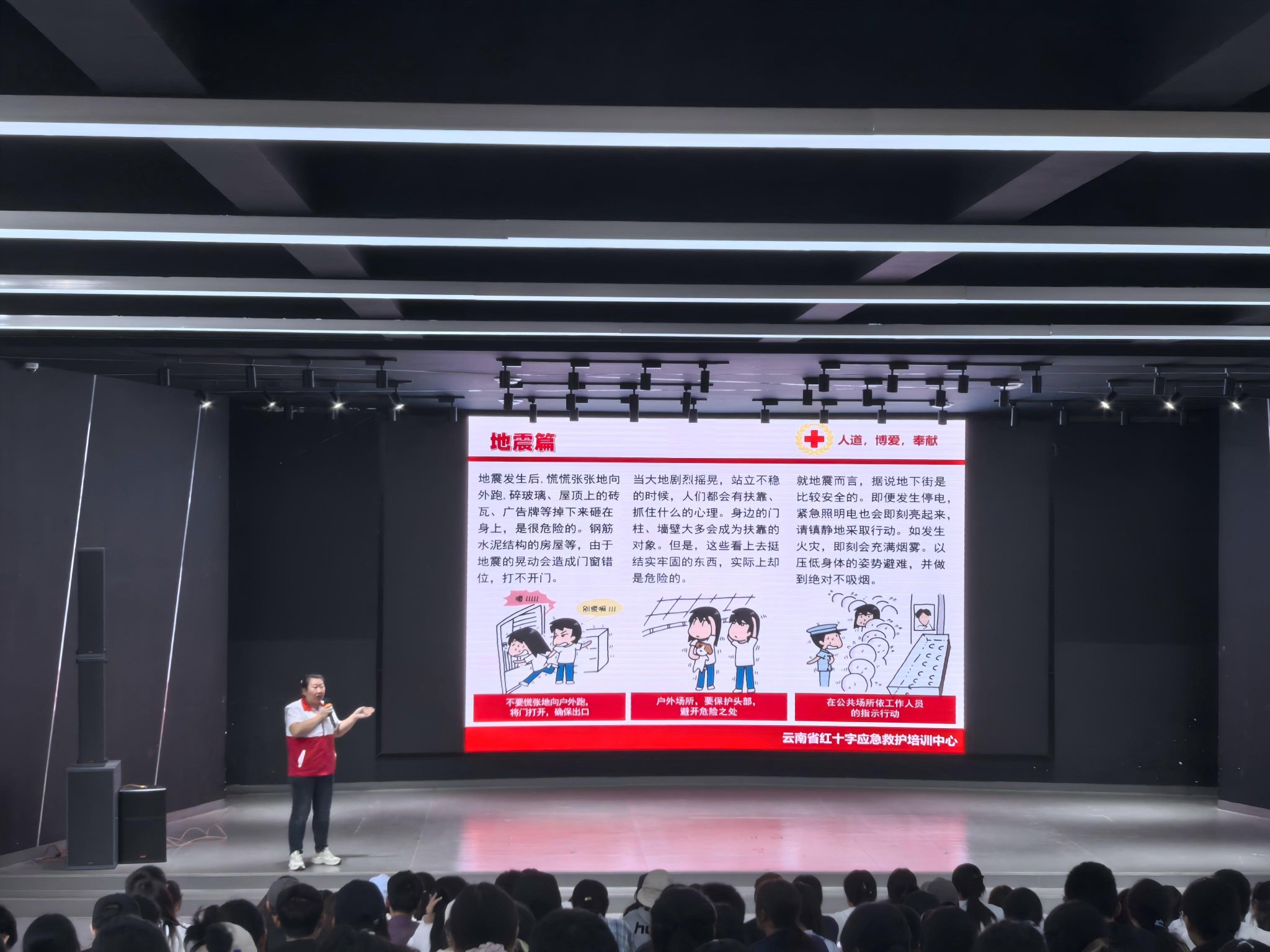 在第36个国际减灾日来临之际,为增强师生防灾减灾意识,提升应对突发事件的自救互救能力,10月13日,校红十字会举办“世界急救日——防灾减灾”公益主题讲座。活动特邀云南省红十字备灾救灾中心(云南省红十字应急救护培训中心)周晨晨老师担任主讲,各学院师生代表参加学习。此次活动由商学院青年志愿者协会承办。